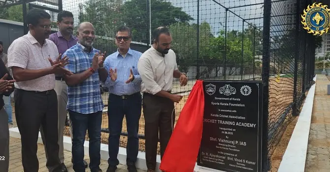 A new chapter of budding cricketers begins at Jimmy George Stadium, Trivandrum! The newly installed cricket training and coaching nets, a proud initiative by Kerala Cricket Association in association with Sports Kerala Foundation was inaugurated by Vishnu Raj IAS, Director, Directorate of Sports & Youth Affairs, in the presence of KCA President Jayesh George and Secretary Vinod S Kumar.